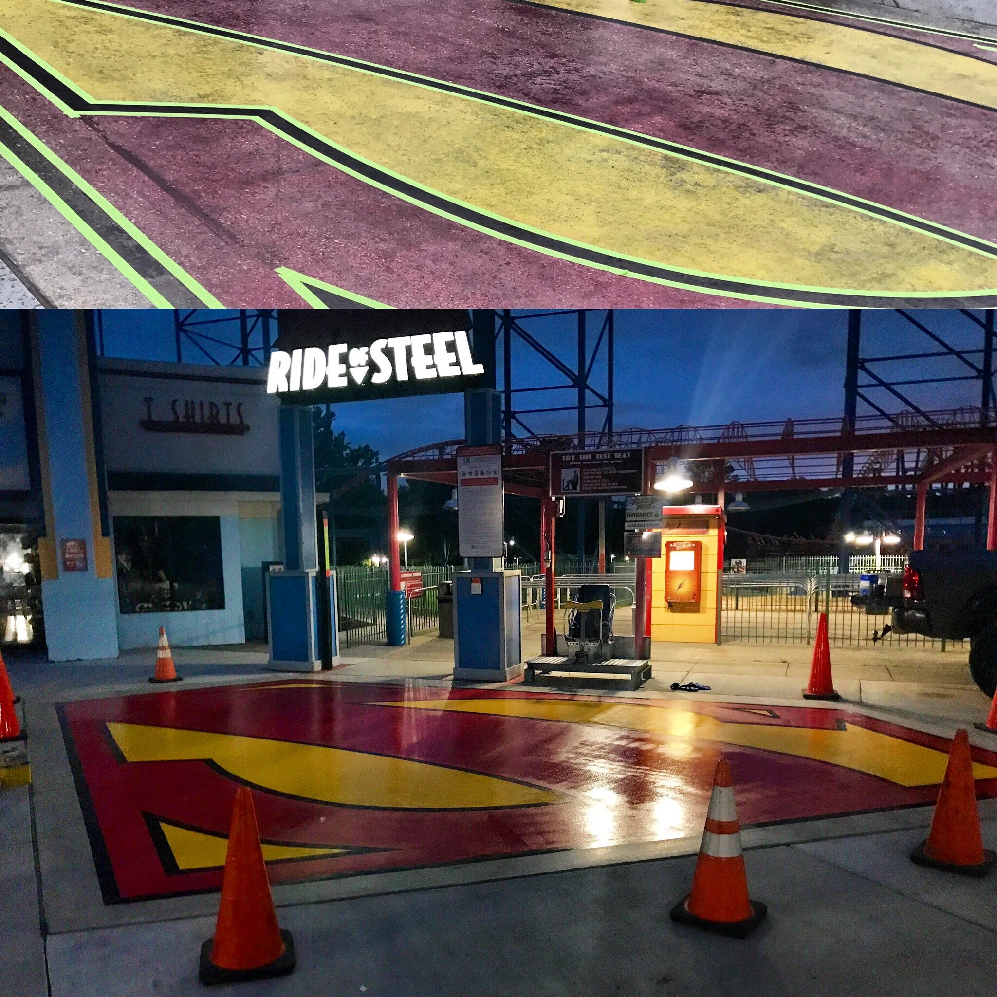Concrete stains do not withstand the Sun, bubble gum, sodas, millions of guests foot traffic and company vehicles… solution? At Fox Fine Arts we have our own specialty PolyThermal Concrete System that is UV repellent, flexible, durable and proven to last for years! We also specialize in concrete wall murals. Let us help you keep your park looking its best!
